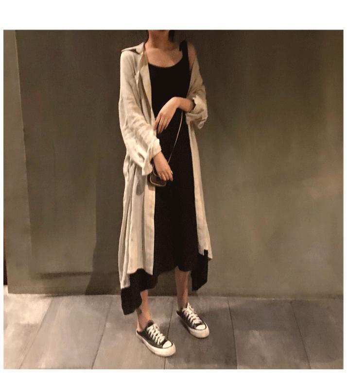 【セットアップ】ロングシャツ+キャミワンピース ツーピース a177