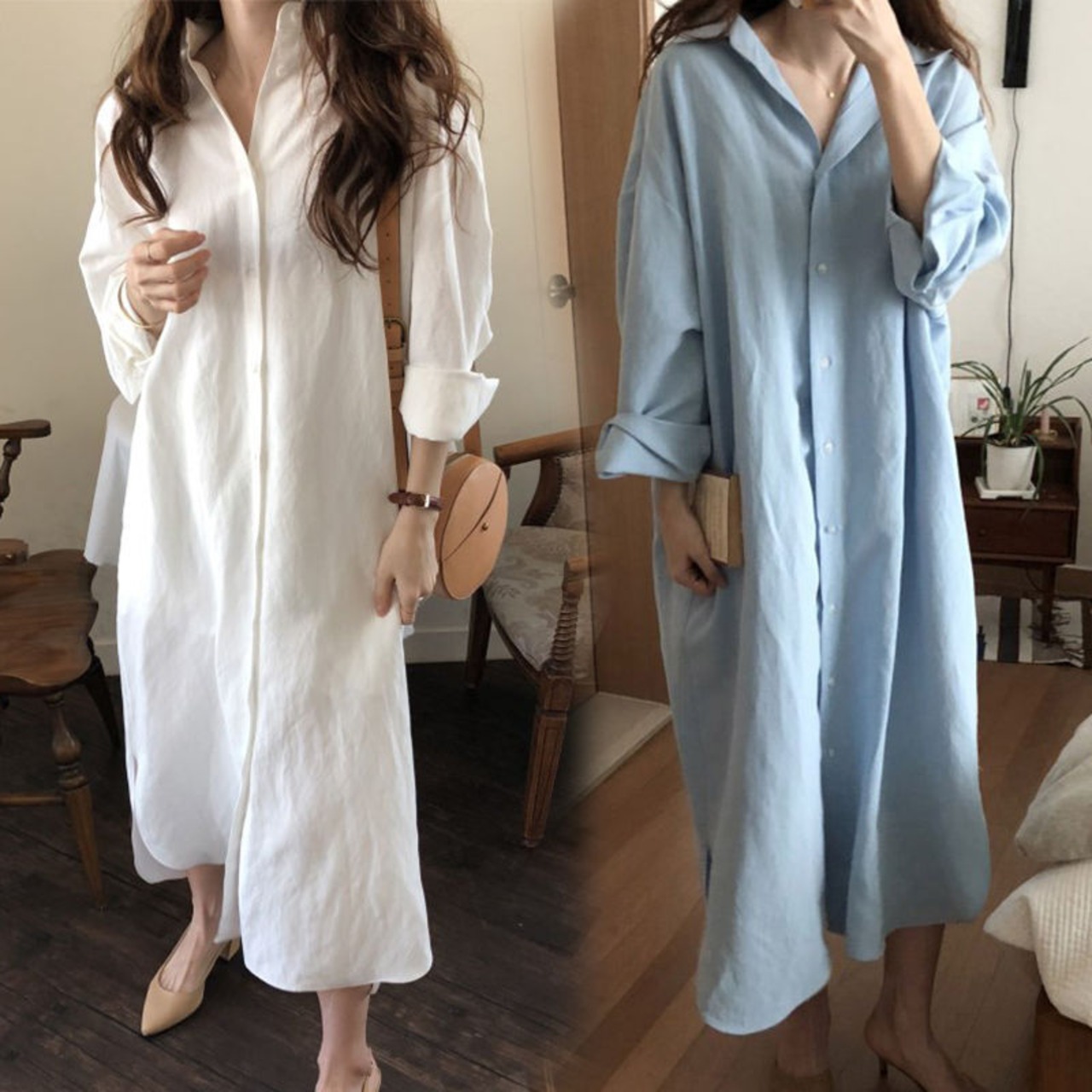 さわやかなロングシャツワンピです。