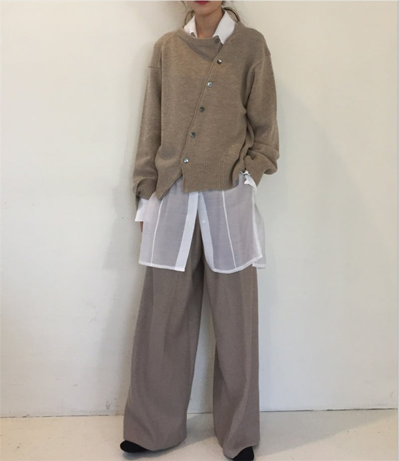 長袖ニットカーディガン 斜めのバックル セータージャケット A2061