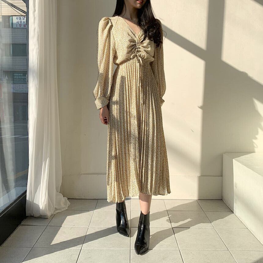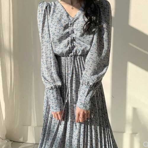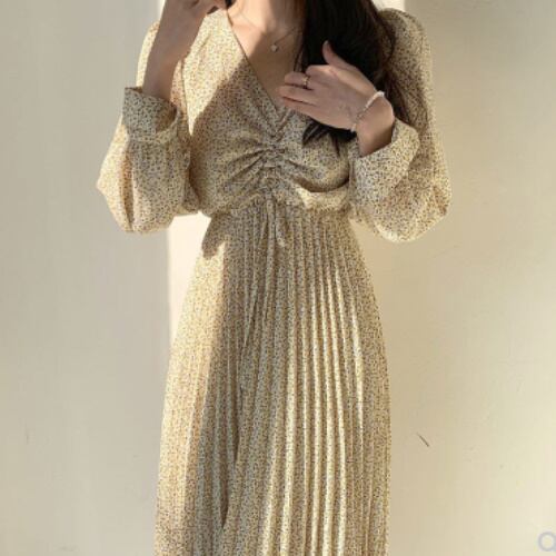 パフスリーブ フェミニンプリーツワンピース 3色展開 A2135