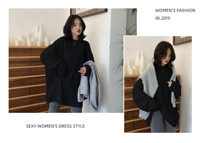 韓国スタイル ゆったり ロング Tシャツ トレーナーレディース 4カラー a263