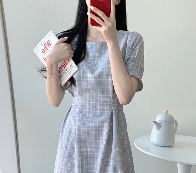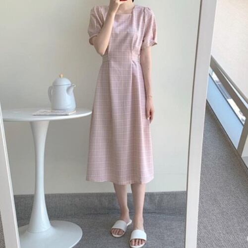 優しいカラーのチェック柄ワンピースのご紹介です。