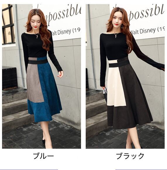 【セットアップ】 トップス+スカート セパレート ワンピース スウェード ツーピース 2カラー a280