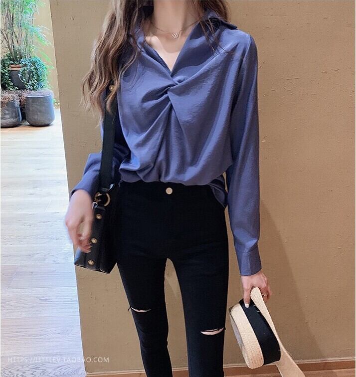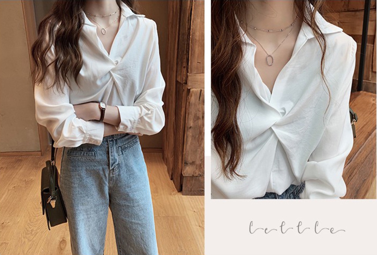 Vネック ブラウス 前くしゅっとデザイン ゆったり シャツ トップス シフォンブラウス 3カラー a284