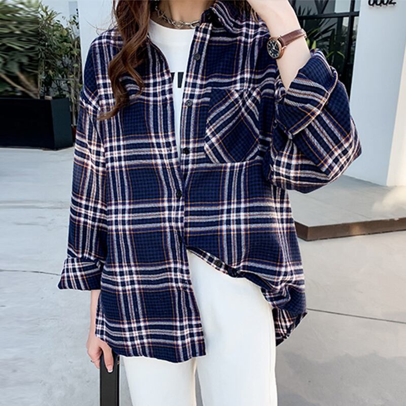 ゆったりとしたギンガムチェックシャツ