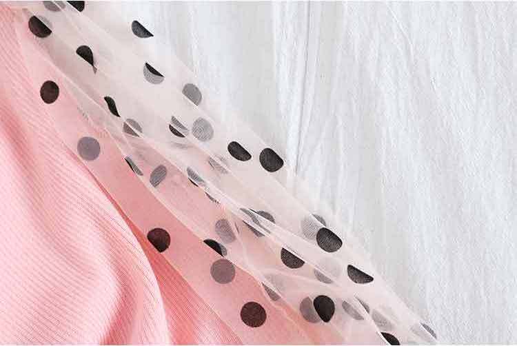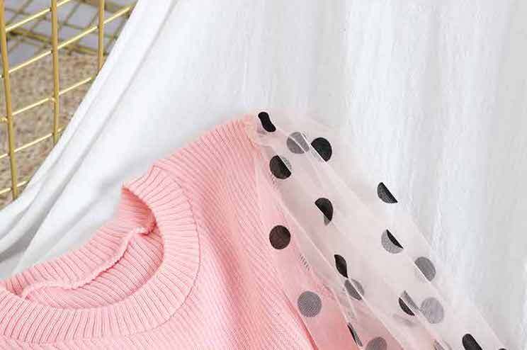 ドット柄 シースルースリーブ 長袖 トップス ラウンドネック プルオーバーセーター 韓国 a297