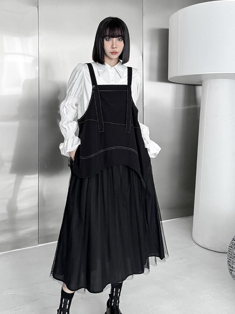 メッシュサスペンダースカートワンピース サスペンダーワンピース ワンピース レディース カジュアルスタイル サスペンダー付きメッシュスカートワンピース デイリーコーデ モード系 スタイリッシュ A2251