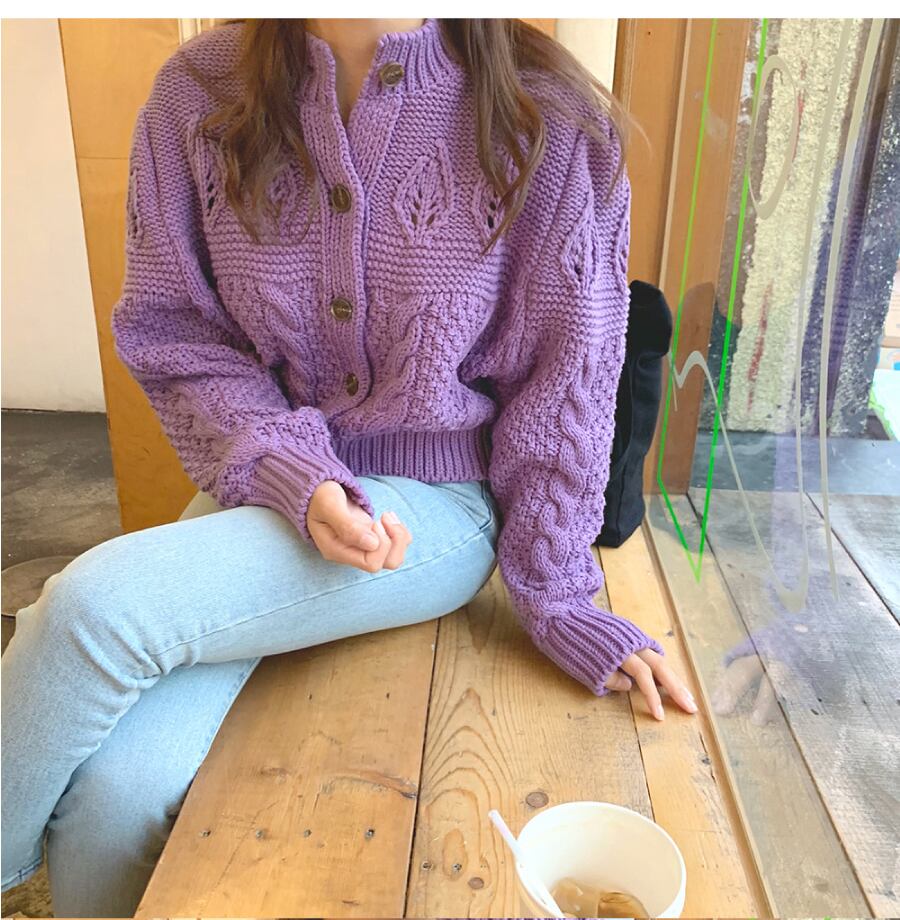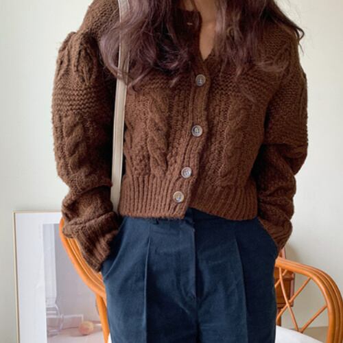 ケーブルカーディガンはざっくり感の可愛いデザインです。