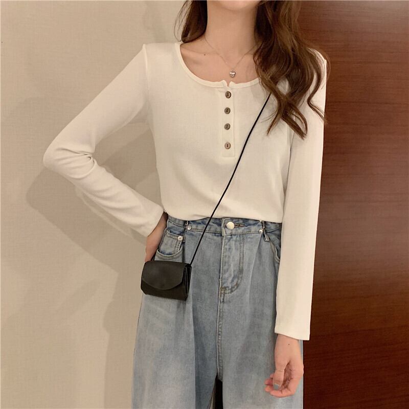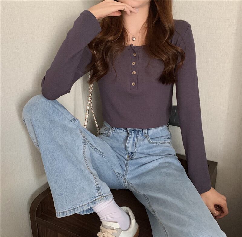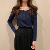 ラウンドネック 長袖 トップス アウター ソリッドカラー 5カラー a307