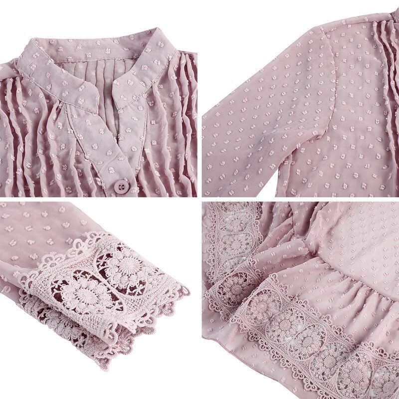 大きいサイズ レース シフォン ルーズ ブラウス 女性 ファッション トップス 長袖 vネック シャツ 4xl 5xl A352