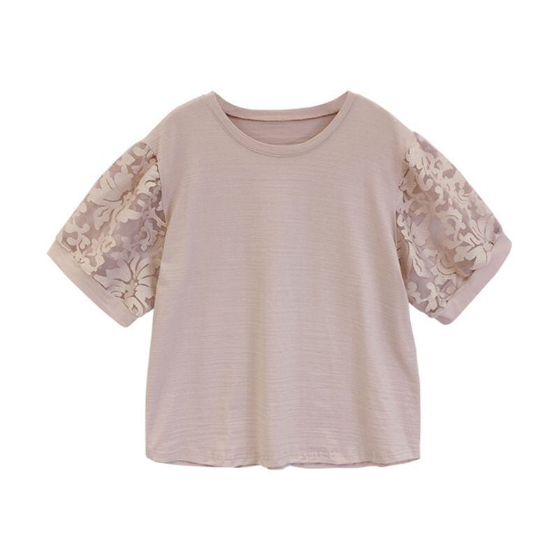 メッシュレースステッチが女性らしい半袖Tシャツ