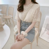 トップス レース 半袖 ブラウス 清楚 おしゃれ 普段使い デイリー 女子会 デート 通勤 通学 韓国 オルチャン A375