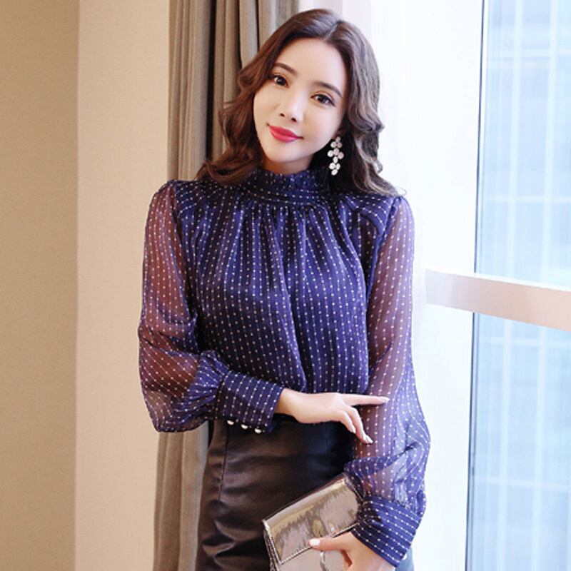 レディース トップス きれいめ シャツ 透け感 シースルー シフォン ブラウス ドット柄 通勤やお出かけA386