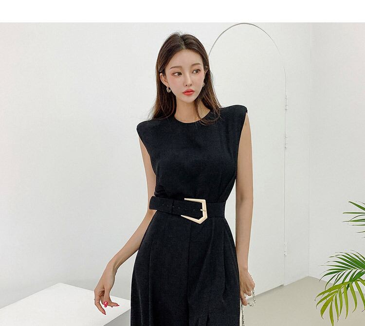 大胆スリット入り ジャンプスーツ ハイウエスト ワイドパンツ ウエストベルト 2カラー a423