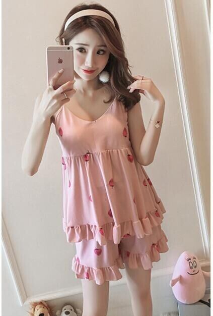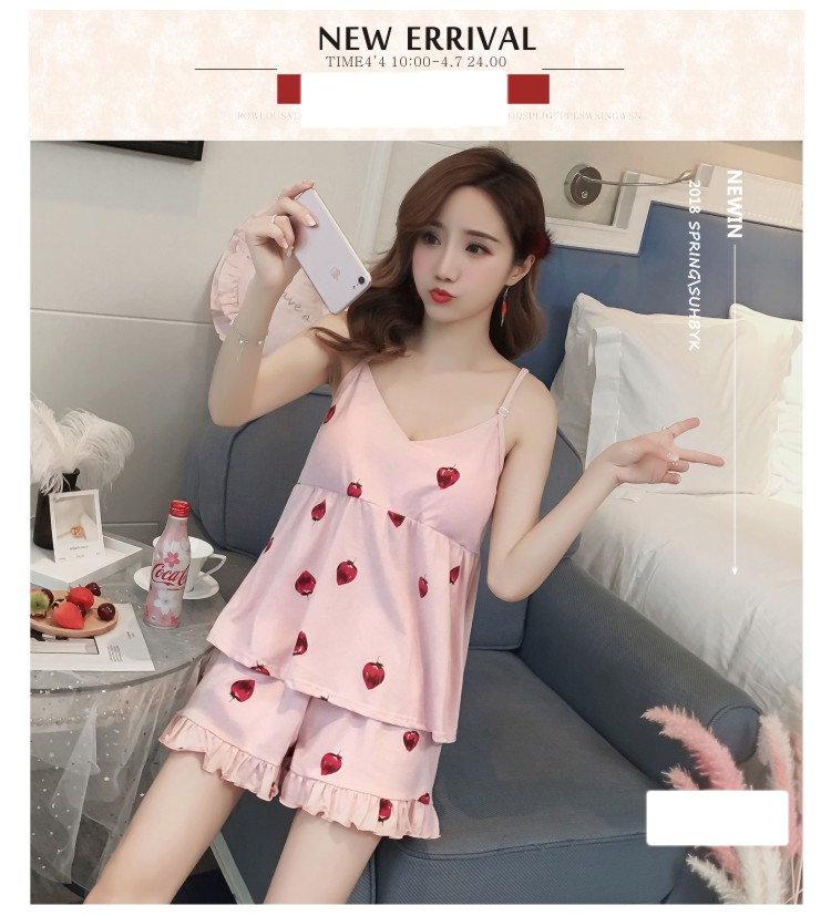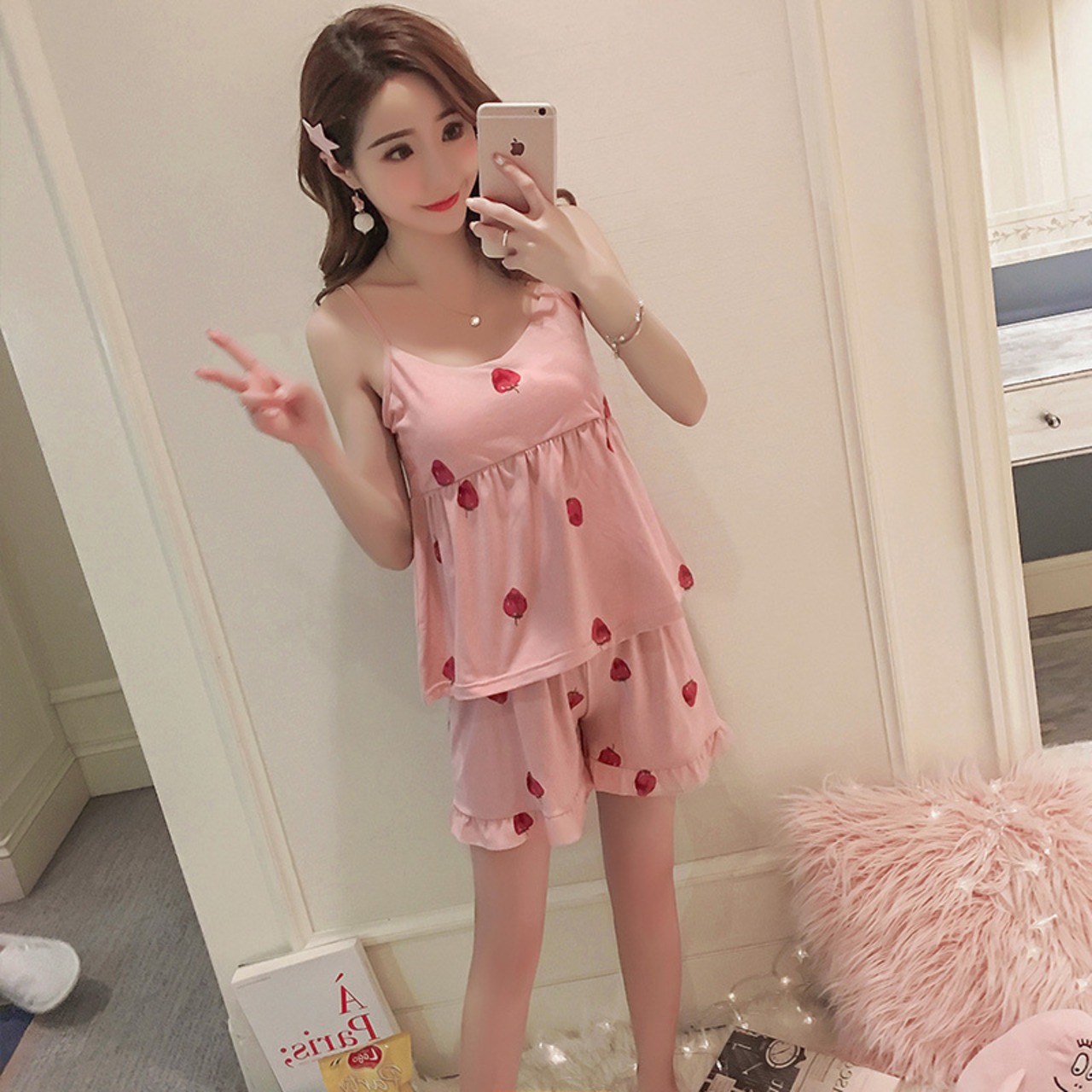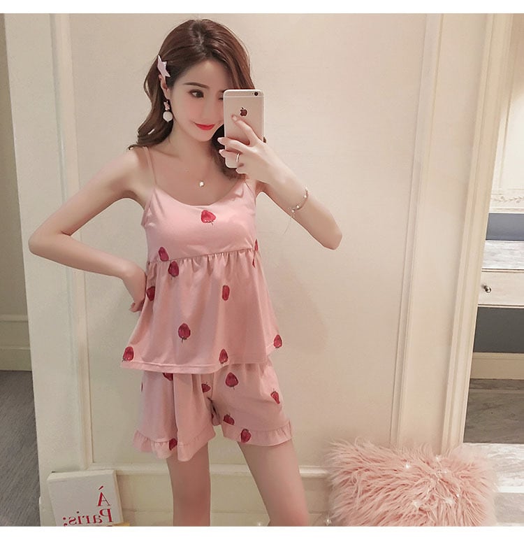 ピンク&ルーム ウェアキャミソール & ショートパンツ セット インナー 上下セット カップ付き A465