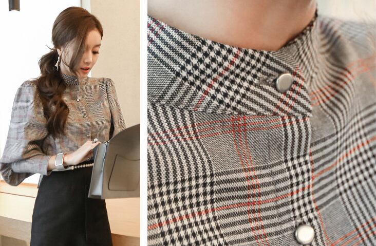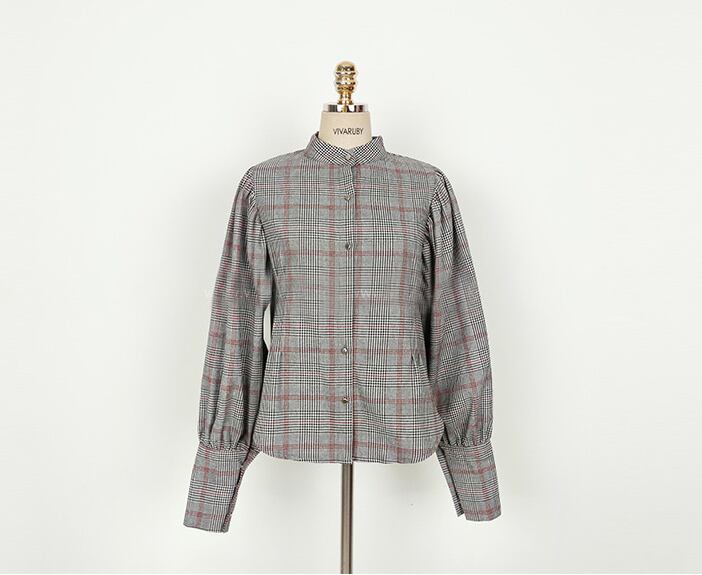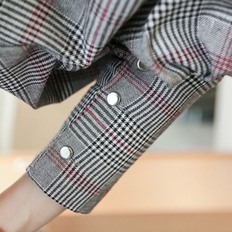 チェック柄 長袖シャツ ブラウス バックリボン ダブルスリーブ a420