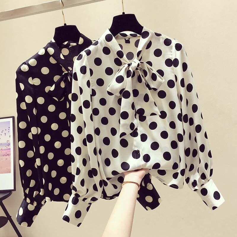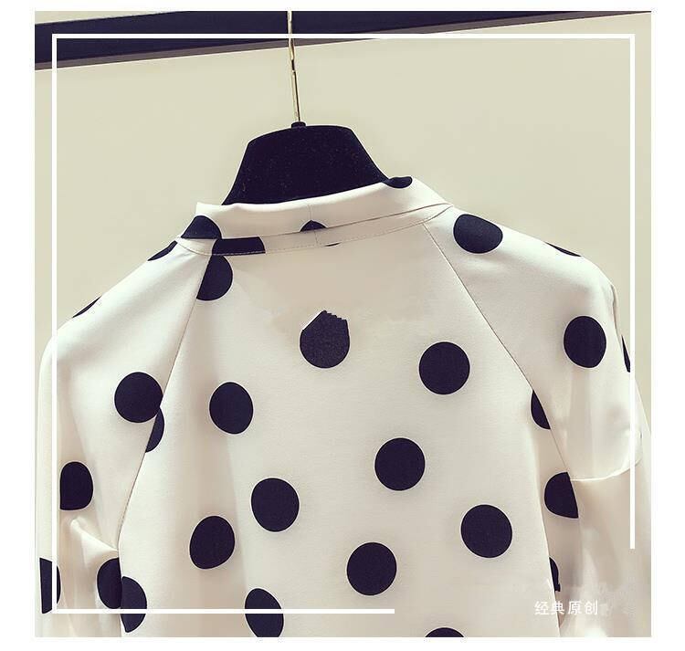 ドット柄ボウタイブラウス スタンドカラー春ZARA風トップス プルオーバー ブラック ホワイト A439