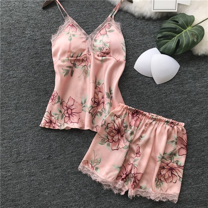 夏♪セクシー ♪シミュレーションシルク♪キャミソール♪花柄 ♪2点セット♪半パンツ♪パジャマA455
