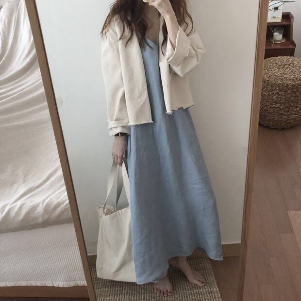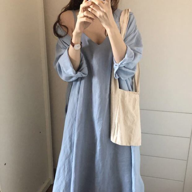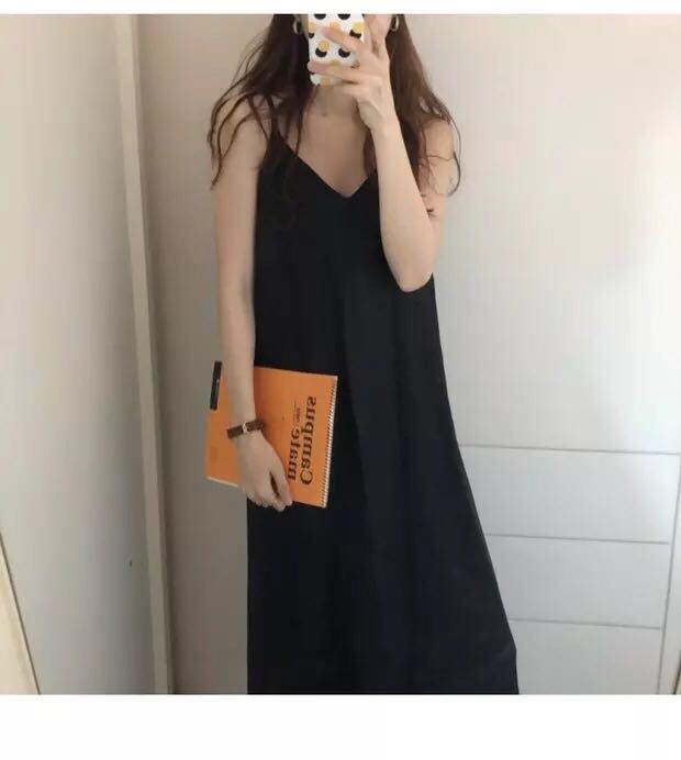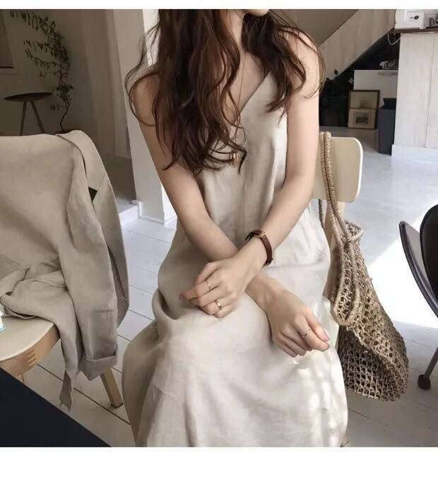 レディース コットンリネン キャミソール ワンピース キャミワンピ マキシ丈 ロング Vネック ナチュラル リゾート カジュアル A488
