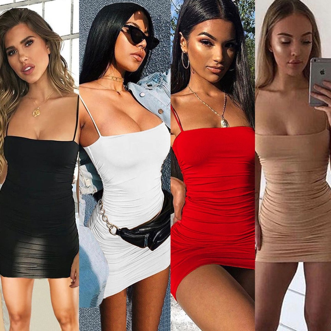 セクシー*エロかわ♪良質*とろみ素材*キャミソール*サイドギャザー入*タイト*チュニックワンピースA496