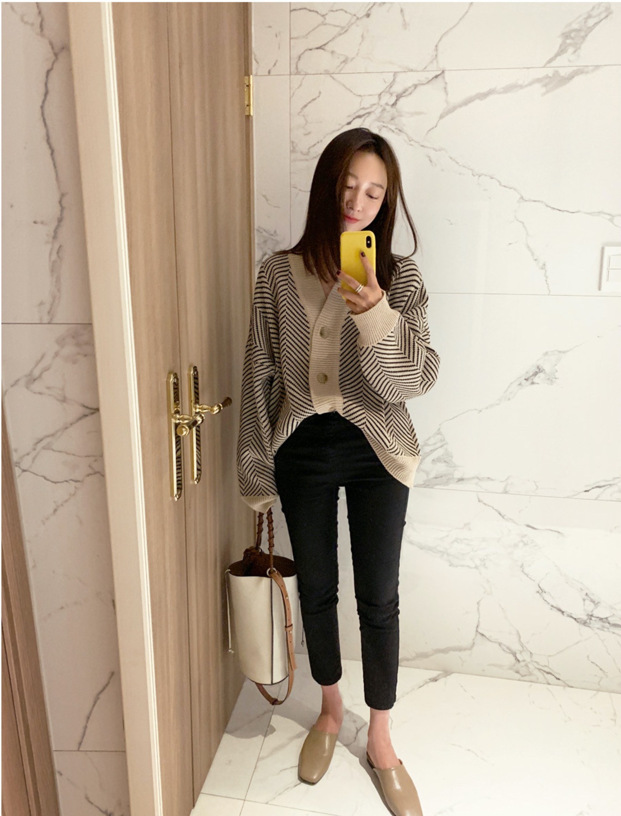 Vネック シングルブレスト ルーズ カーディガン セーター ジャケット レトロ a516