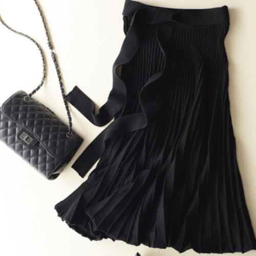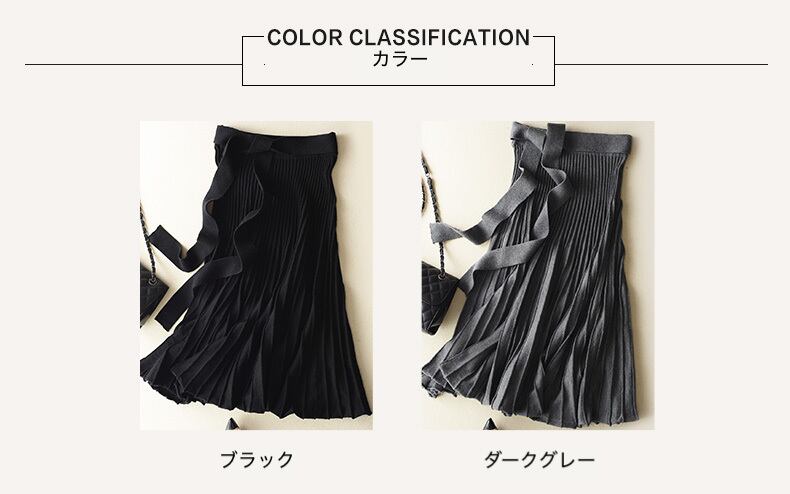 ロングスカート 秋冬 プリ—ツスカ—ト 上品 ニットスカート ロング A1003