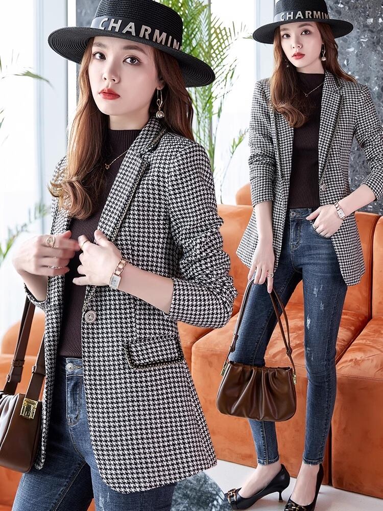 チェック柄ジャケット スリム ウエスト カジュアル スーツジャケット 韓国 レディースジャケット ママコーデ. オフィスコーデ a503