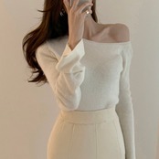 絶妙なワンショルダーがとても可愛い長袖ニット