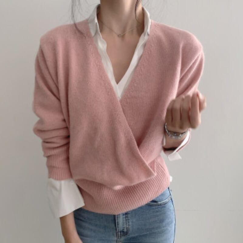 Vネック 長袖セーター ニット トップス フレンチスタイル a531