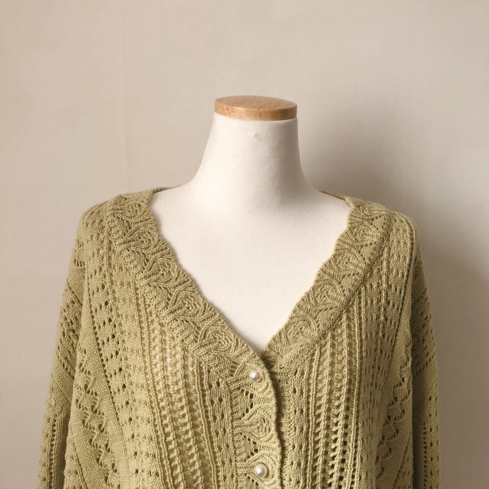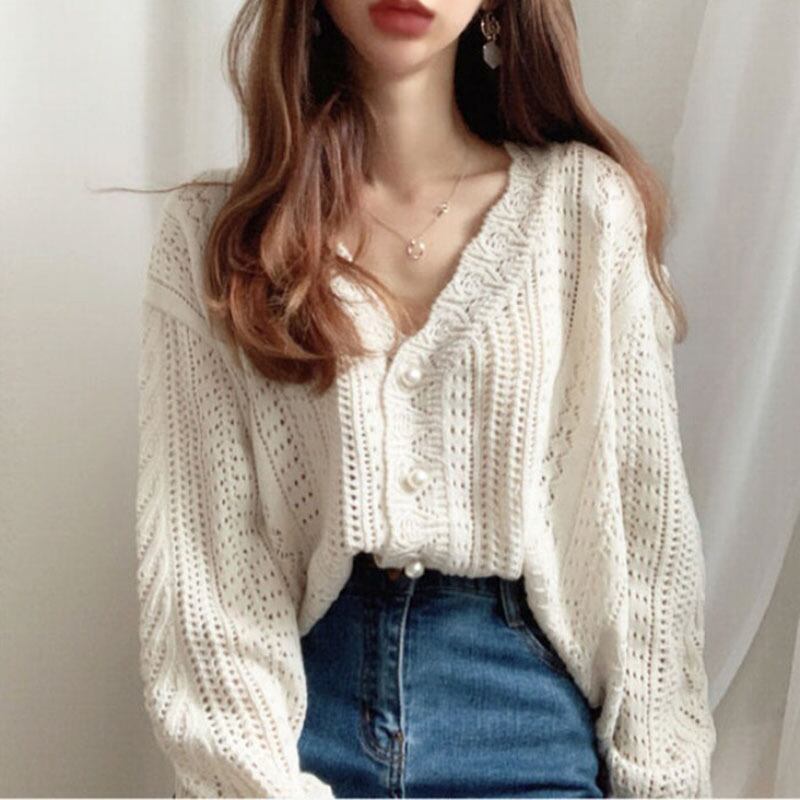 Vネック セーター ニット カーディガン かぎ針編み パンチングレース パール レース 韓国 a532