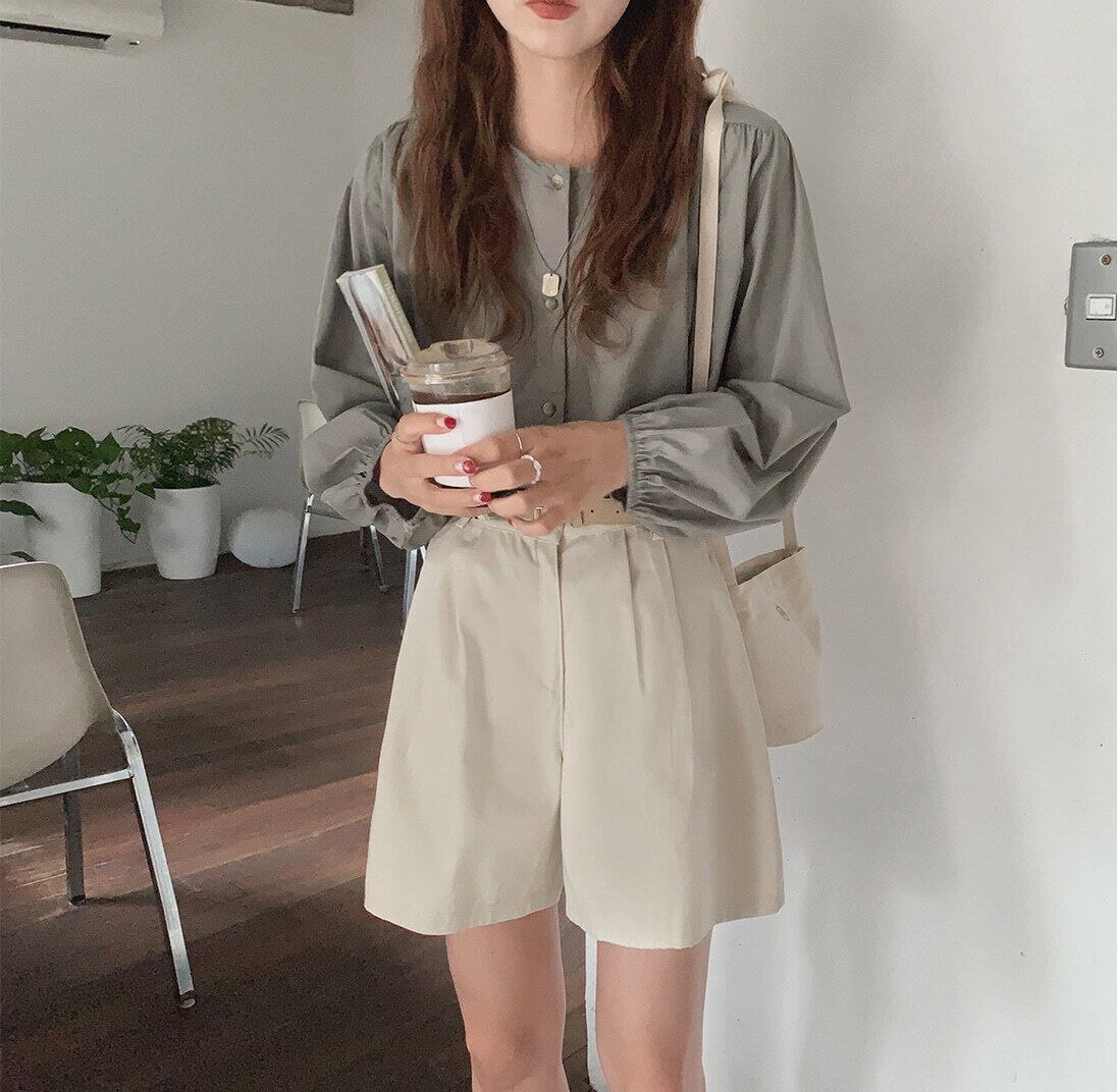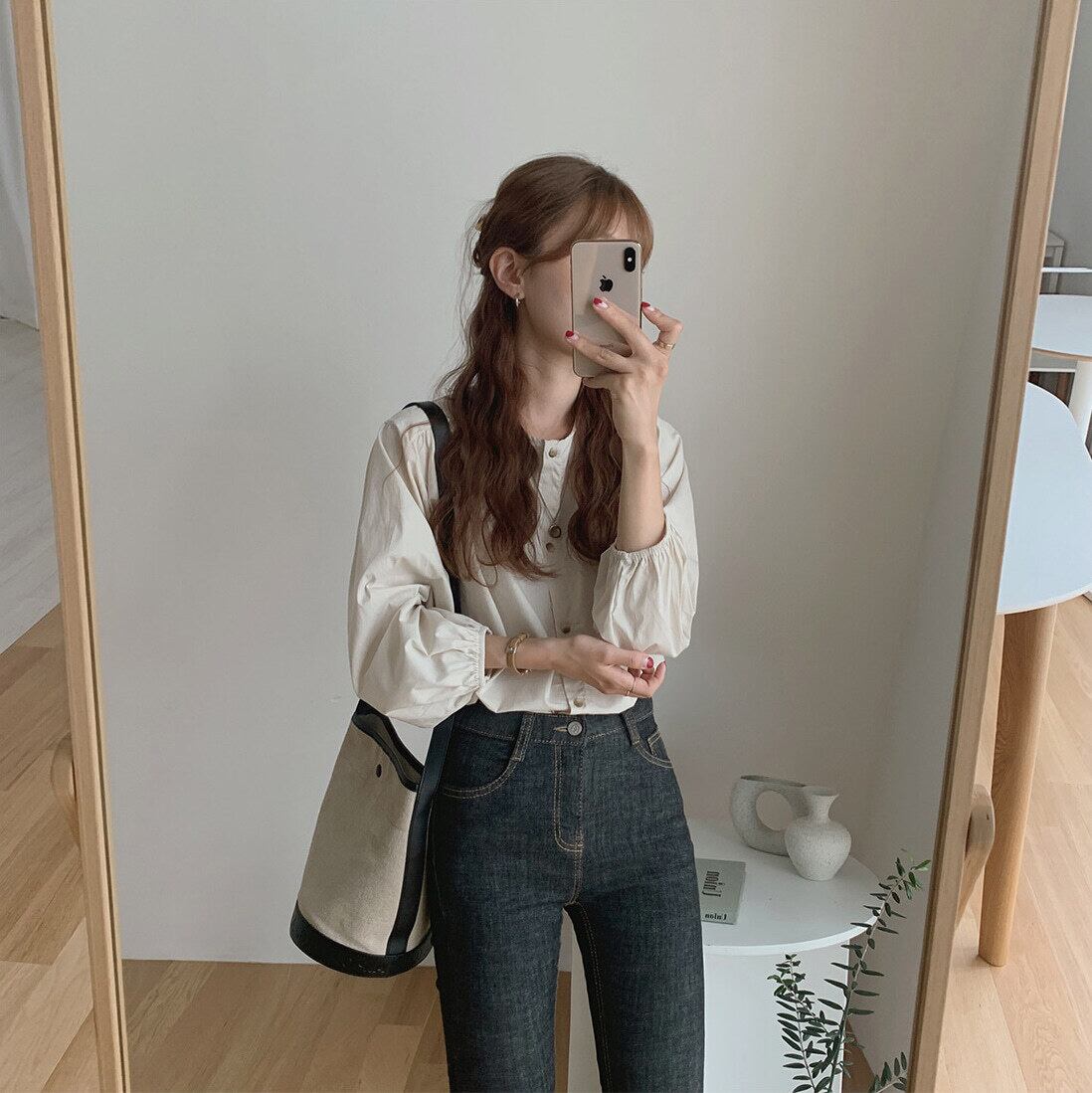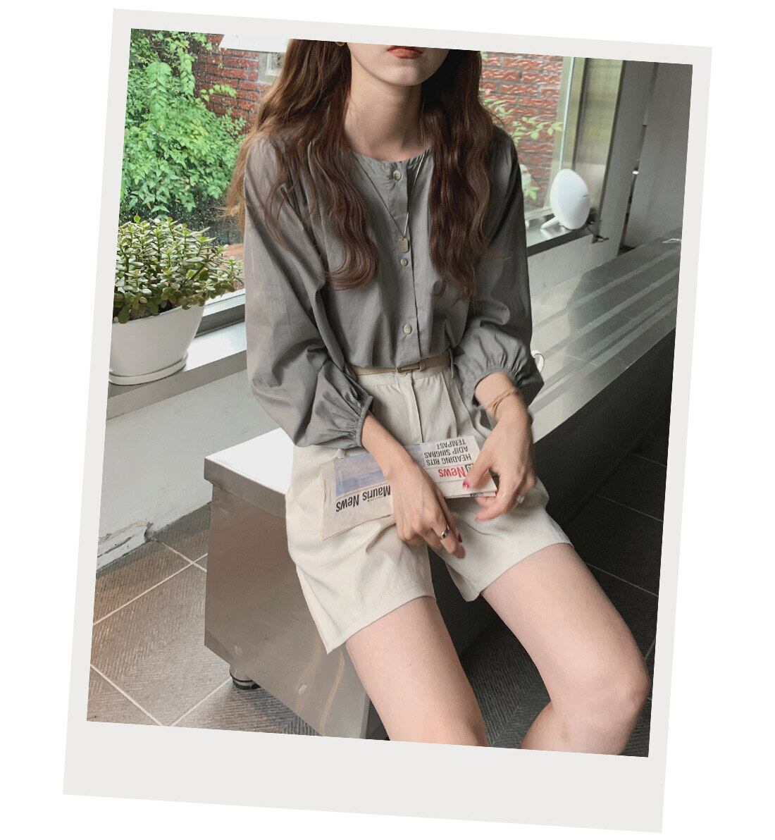 ラウンドネック ブラウス 韓国 シンプル ウエスタンデザイン ニッチ 長袖シャツ 2カラー a534