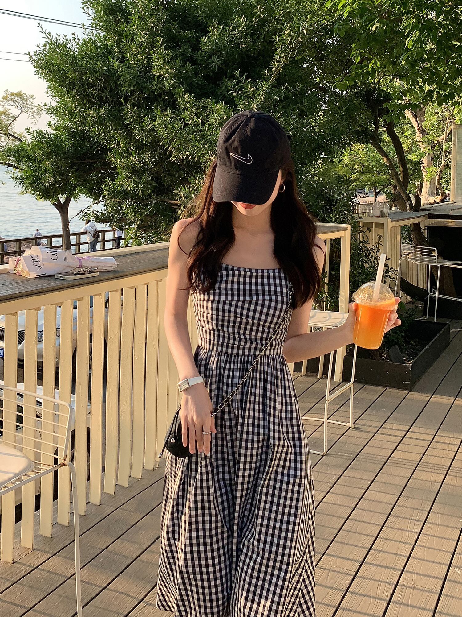 チェック柄 Aライン キャミソールワンピース カジュアル ☆A550