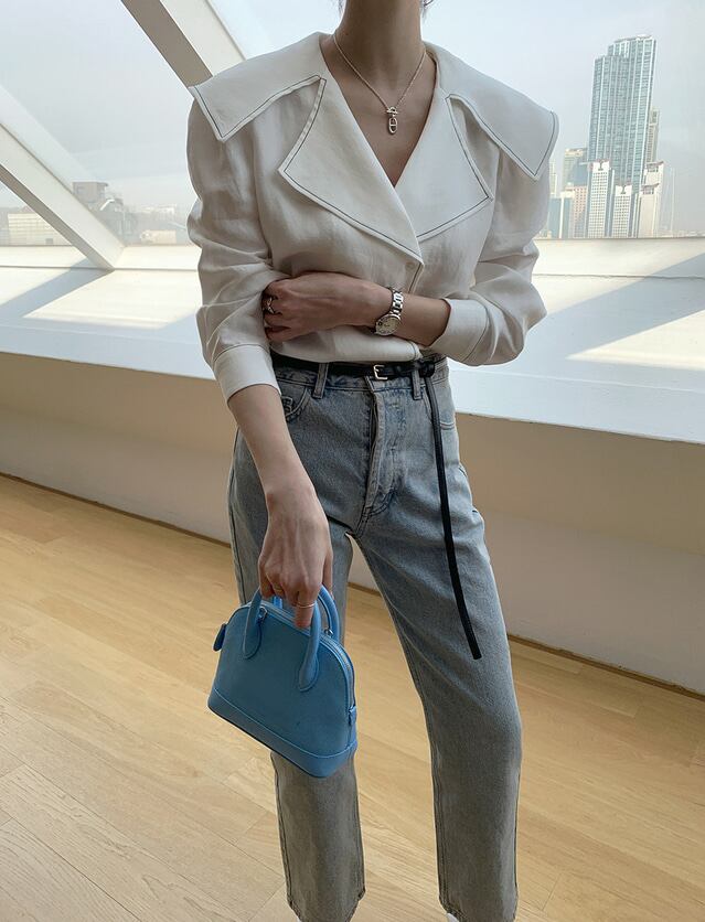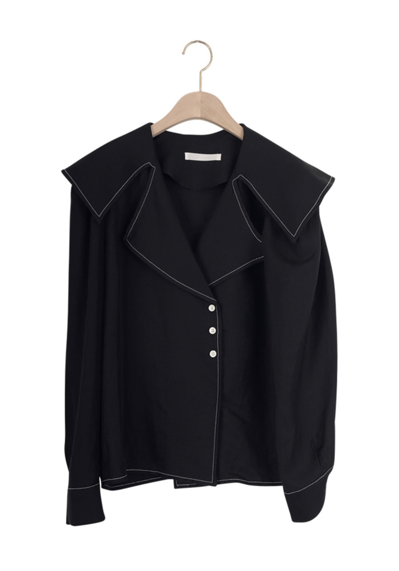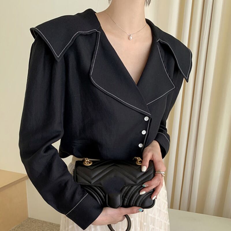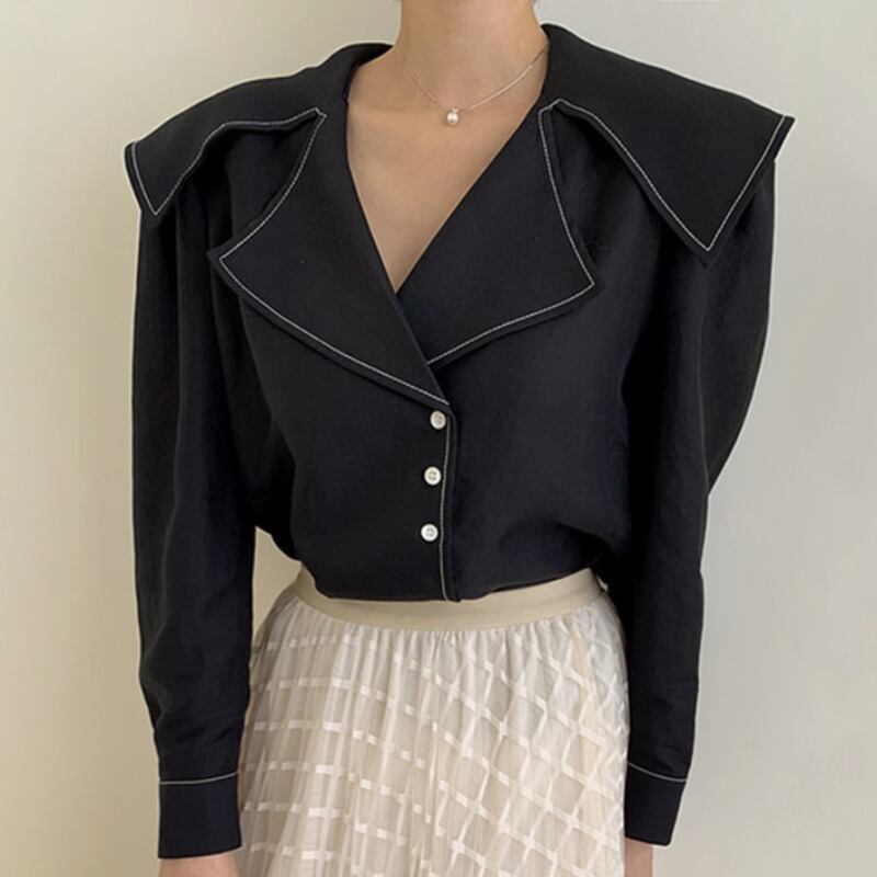 Vネック 長袖シャツ レトロ ワイルドビッグラペル シングルブレスト ルーズ トップス a217