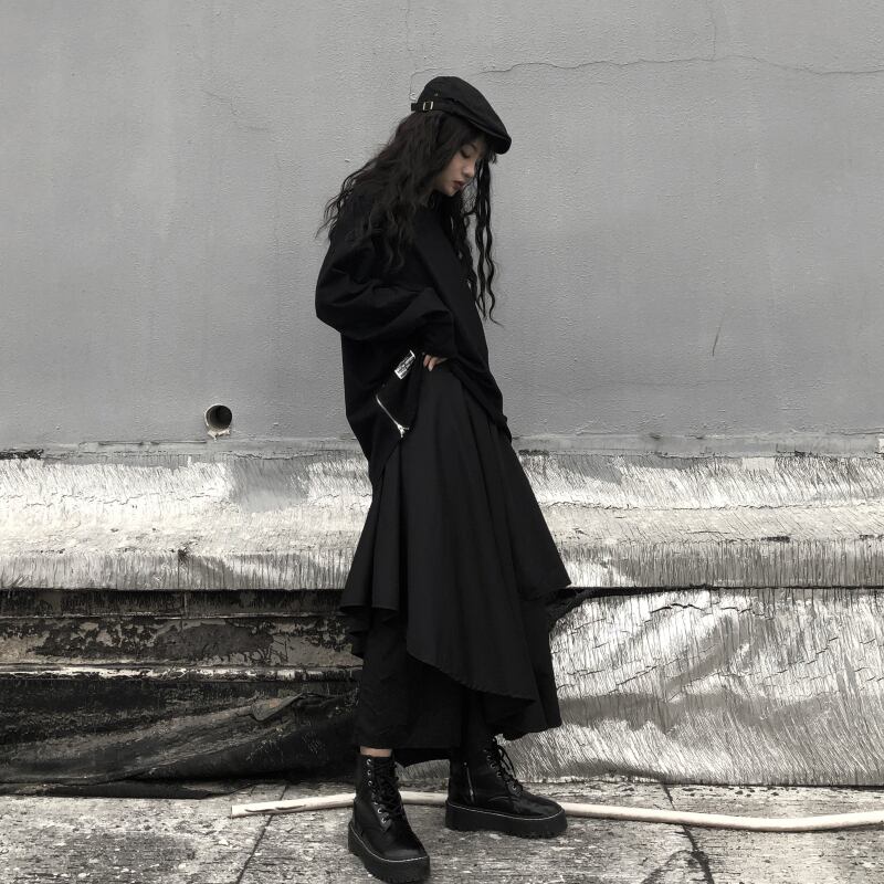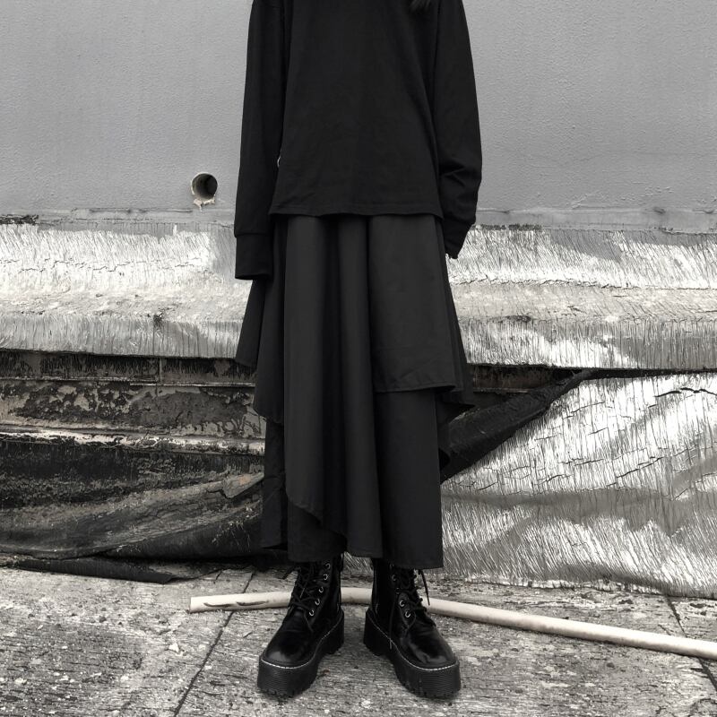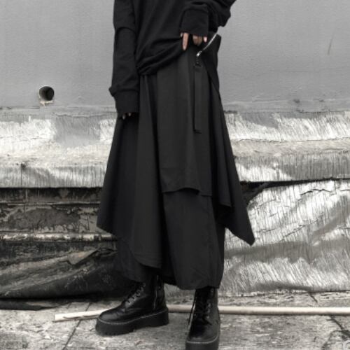 アシメントリーワイドパンツ ゆったり 無地 不規則裾 ワイドパンツ A1061