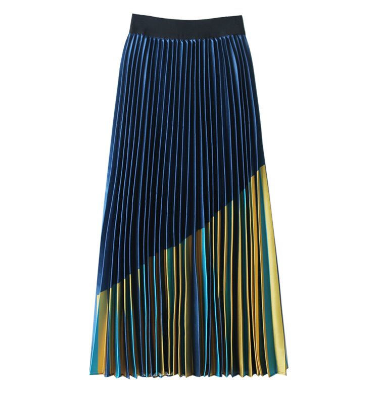 ブルーイエロー パッチワーク シャイニー aライン 女性 スカート ヴィンテージ A1089