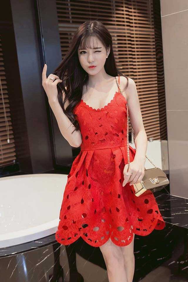 セクシー ミニ ワンピース ースリーブ 刺繍 レース キャミソール フレア 結婚式 フォーマル キャバ嬢A571