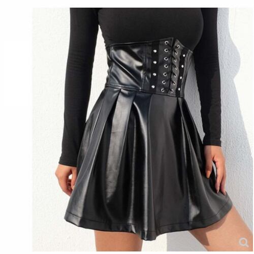 ☆フェイクレザー ハイウエスト ミニスカート ゴシック スカート レースアップ A1056