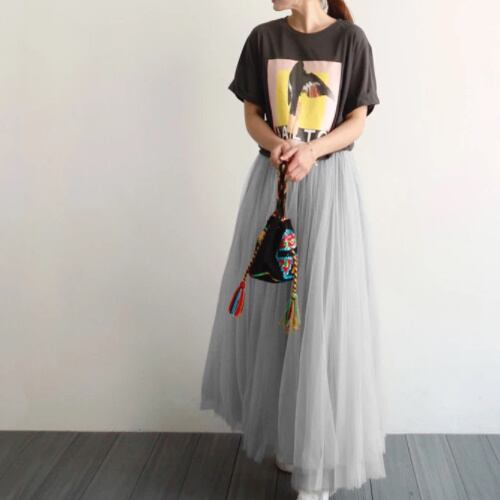ロング丈チュールスカートはフェミニンな可愛いスタイルにピッタリ☆