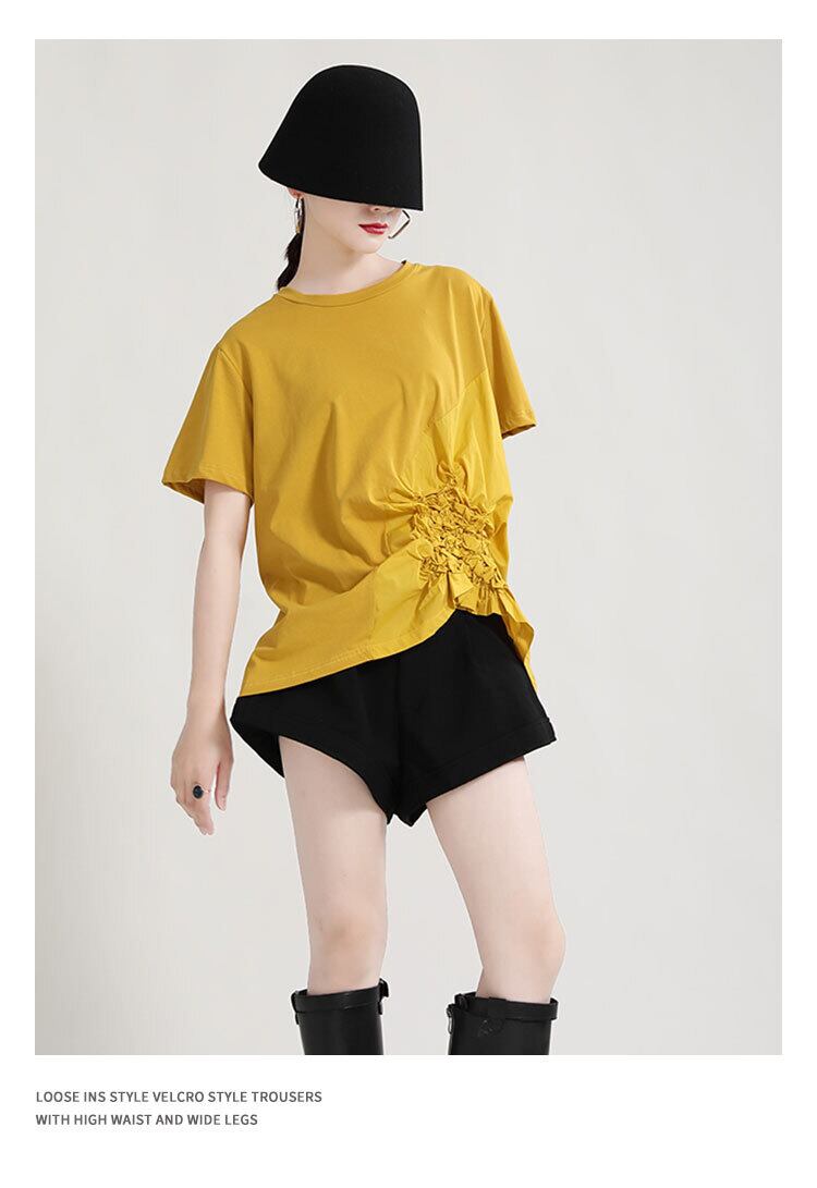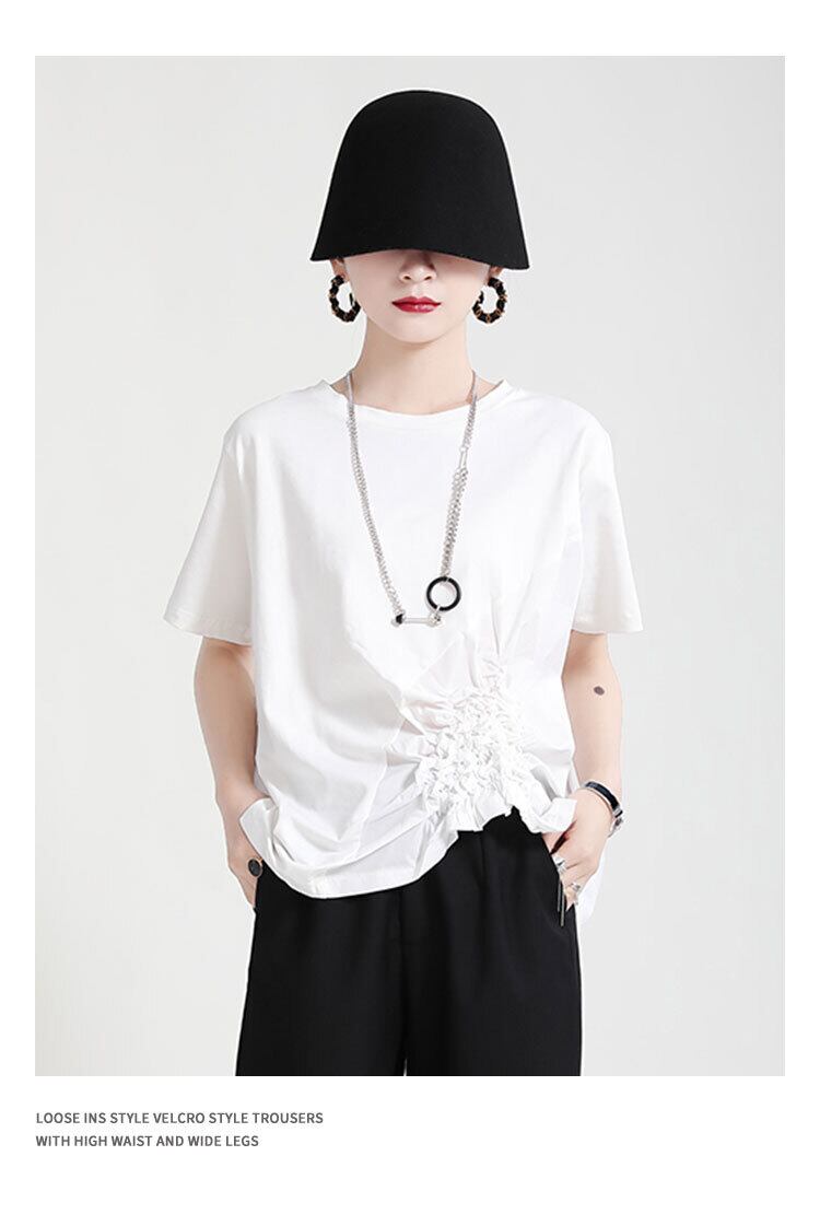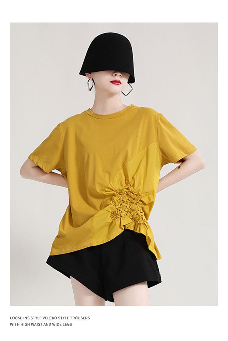 半袖Tシャツ レディース. Tシャツ ブラウス カットソー 不規則な立体カット トップス 3カラー A653