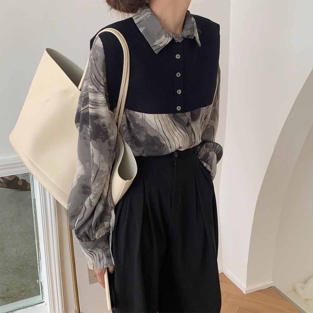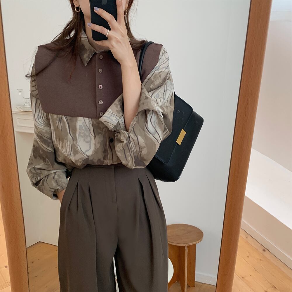 ヴィンテージ風 ブラウス アートシャツ 長袖 韓国 A657