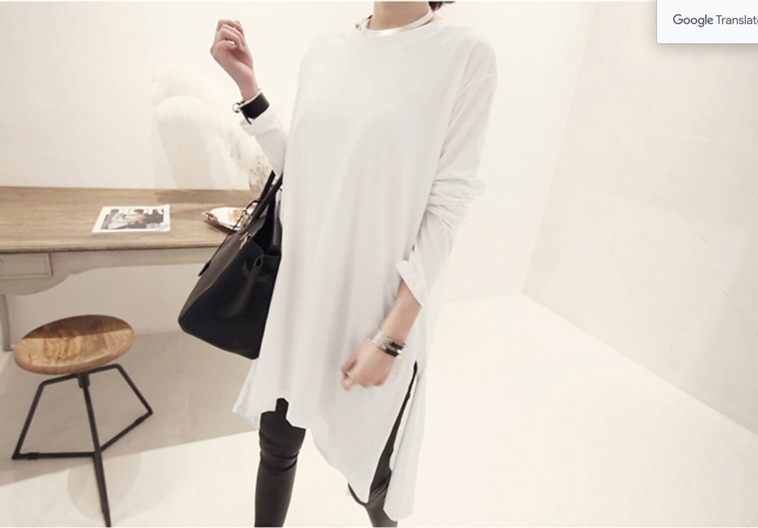 レディース Tシャツ ゆったり 無地 長袖 チュニック ロング丈 サイドスリット A662