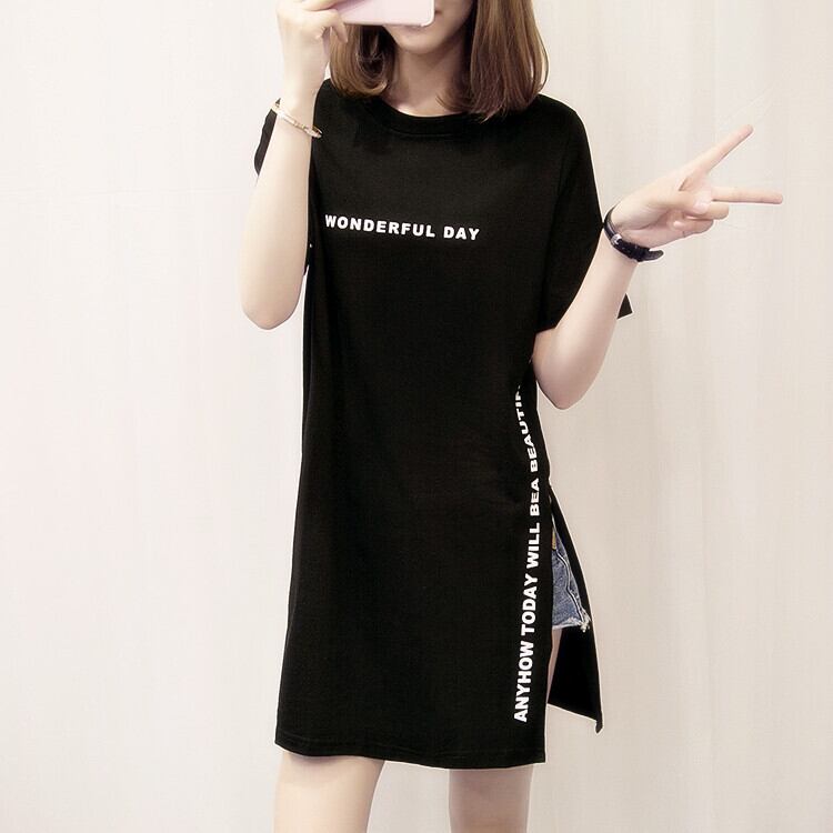 Tシャツ 半袖 トップス シンプル セクシー シャツ スリット ロング A664
