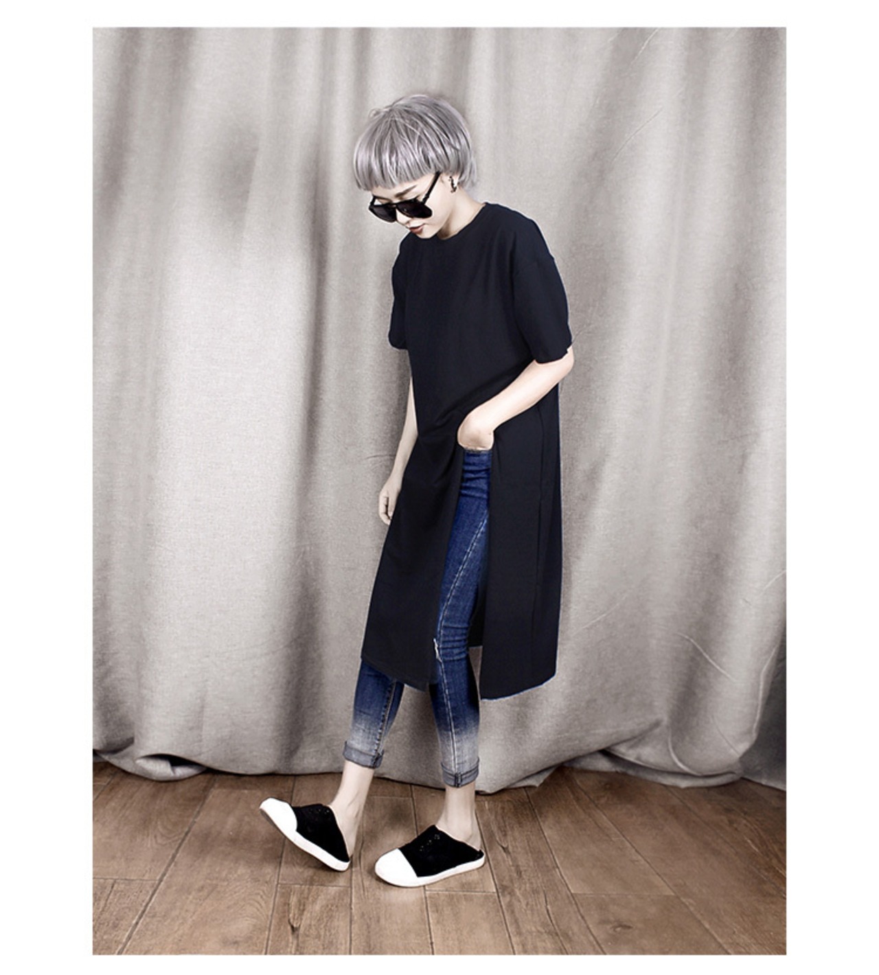 スリット入り オーバーサイズ Tシャツ 白 黒 女性 ホワイト A680