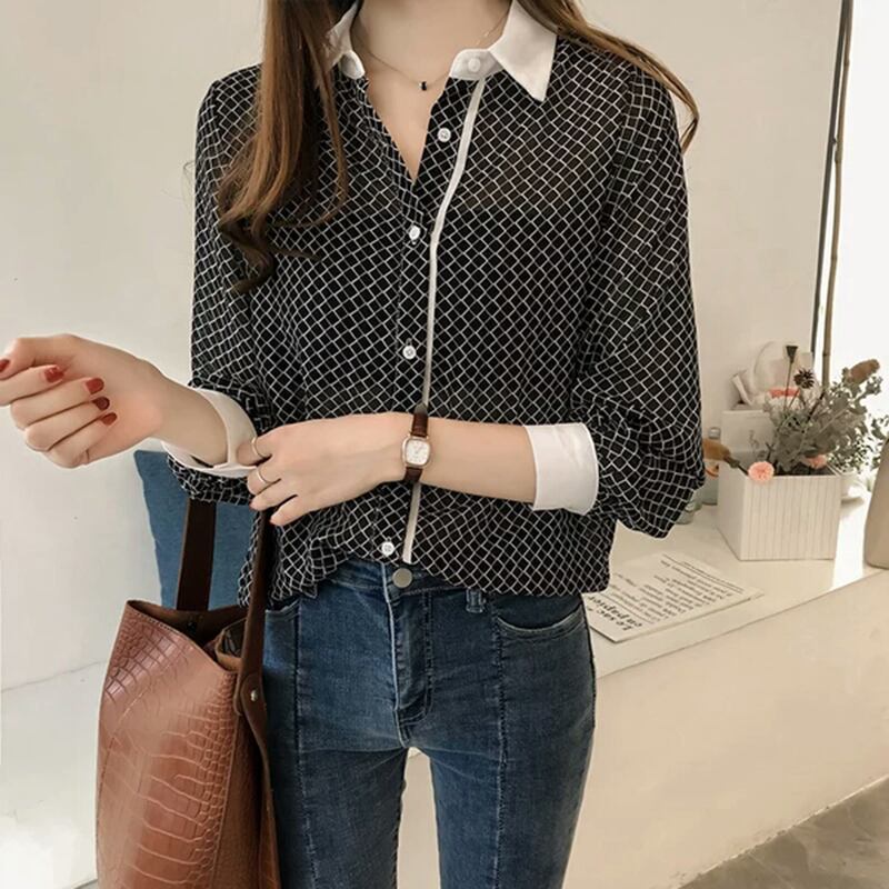 秋 ファッション 女性 ストライプ トップス シフォン ブラウス シャツ 長袖 A631