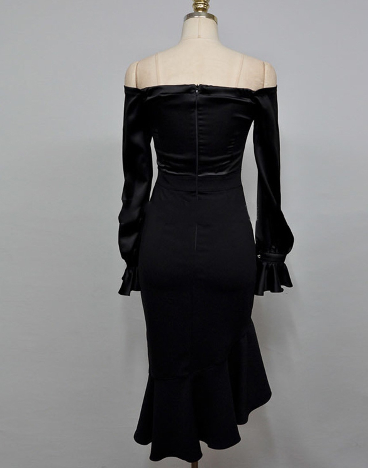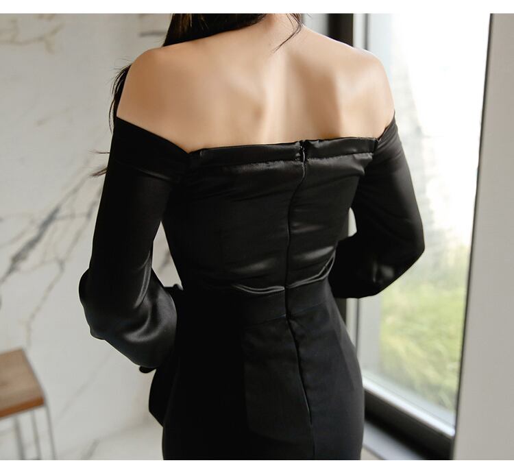 オフショルダー ワンピース シンプル ハイウエスト ひざ丈 ☆A1110