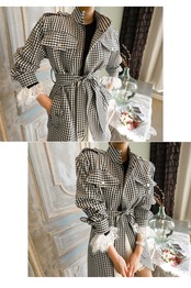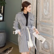 ギンガムチェック ミドル丈コートウエストベルト☆A1161