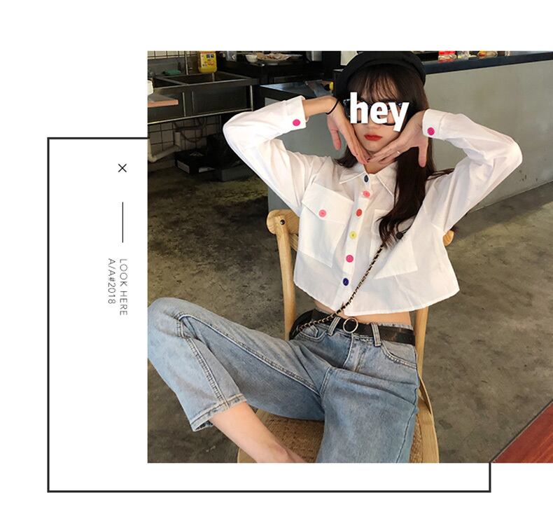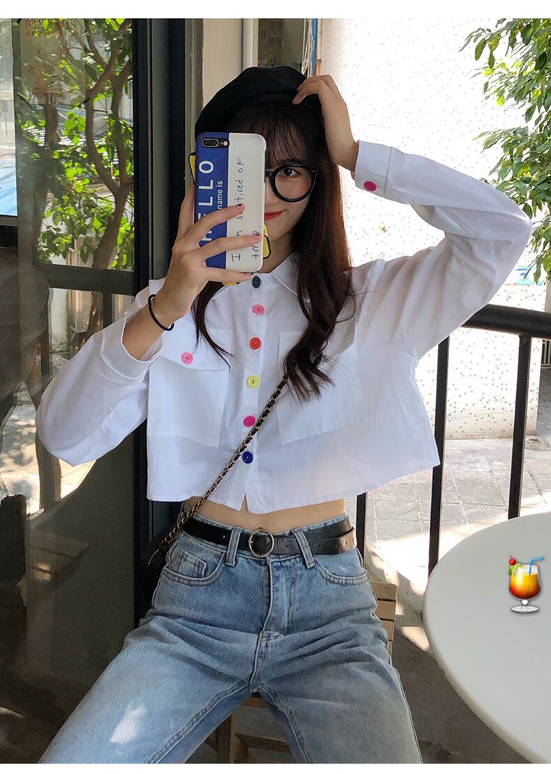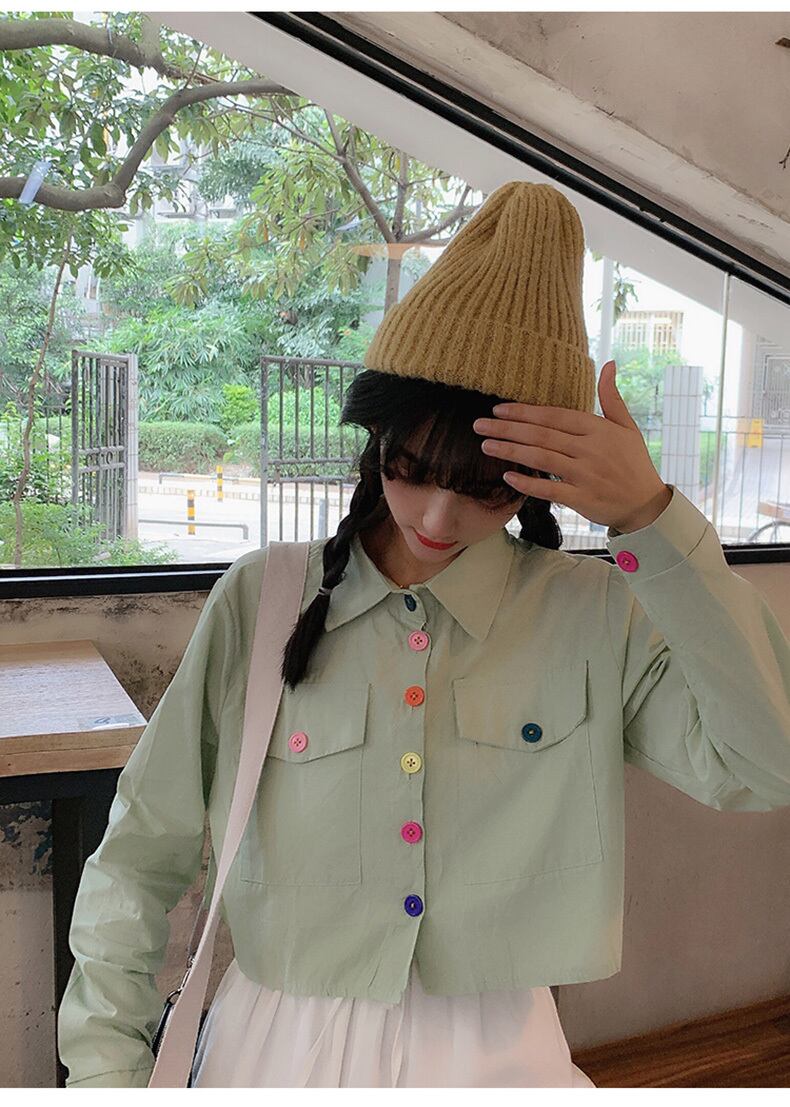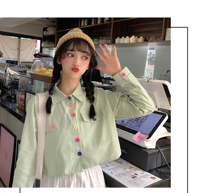 ジャケット ショート丈 シャツ 長袖 ポケット カラフルボタン レトロ アウター トップスA698