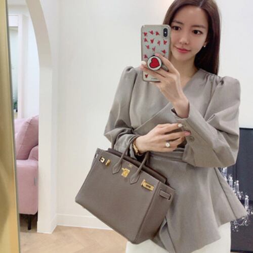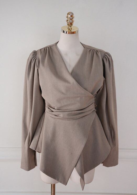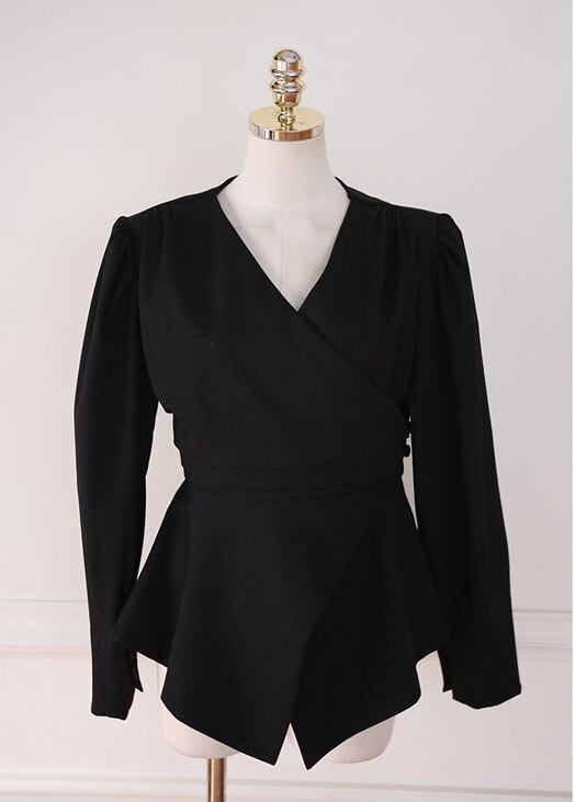 Vネックパフスリーブ ブラウス 秋冬 韓国☆A1164