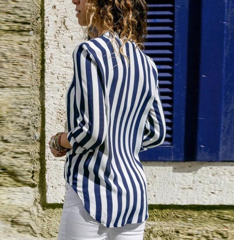 VネックT ストライプ ブラウス シャツ ロングスリーブ トップス 3カラー a847