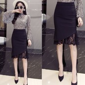 レース 秋新作 オシャレ ハイウエスト 着やせ ひざ丈スカート☆A1193